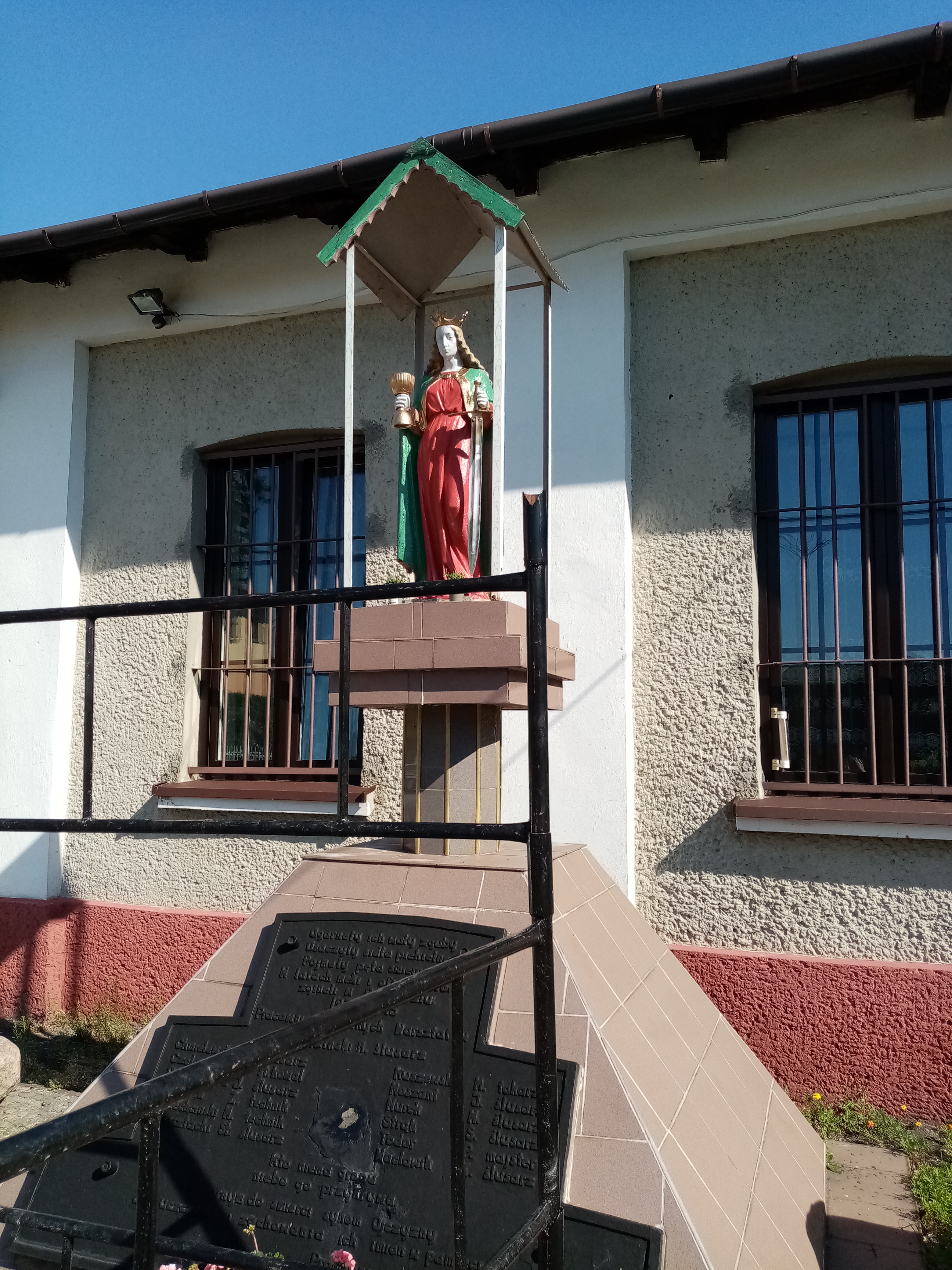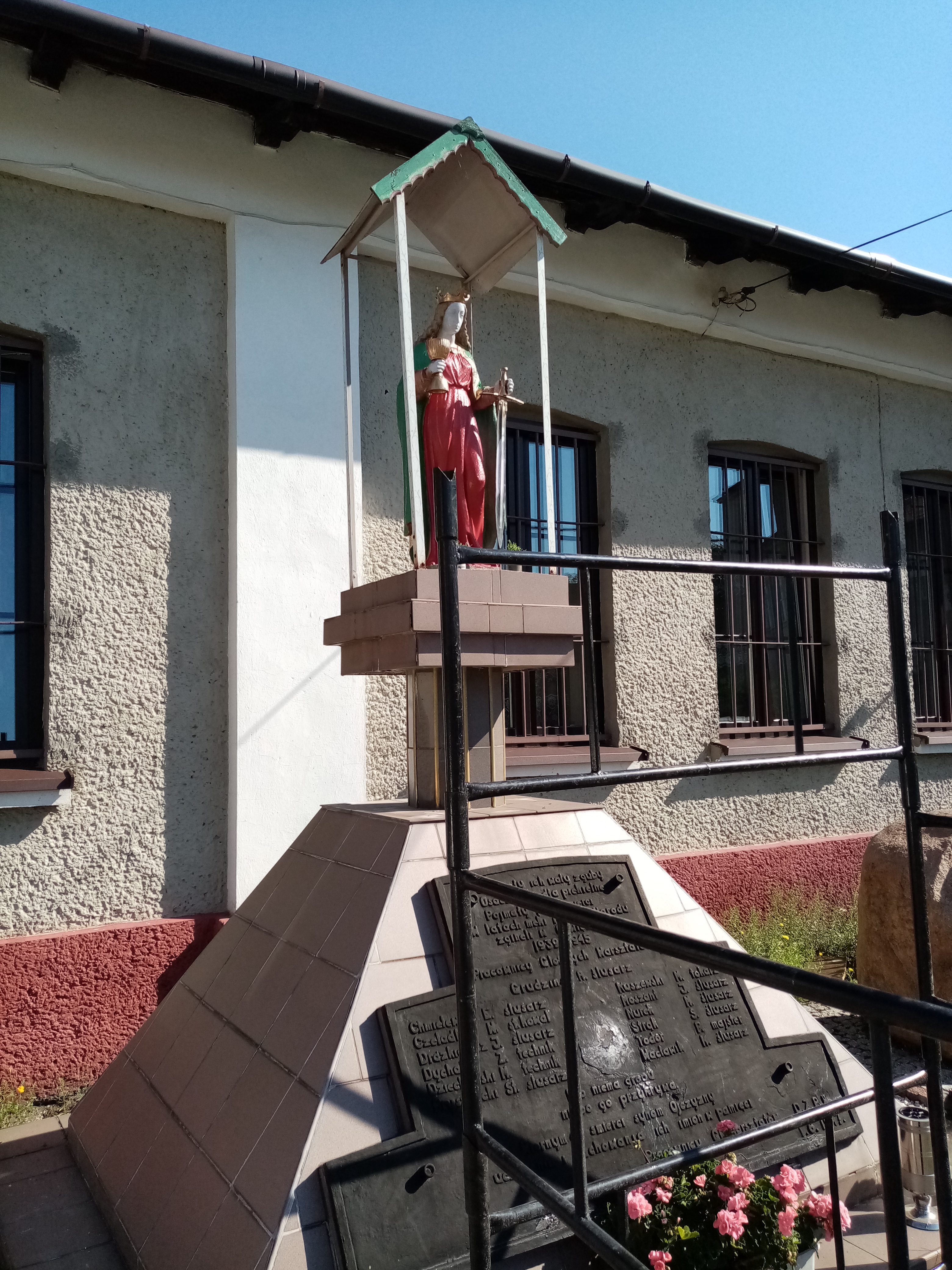 Trwają prace renowacyjne przy figurze Św. Barbary która znajduje się przed kościołem, figura jest w trakcie malowania, w planach jest także naprawa okładziny z płytek które znajdują się na postumencie na którym stoi figura: