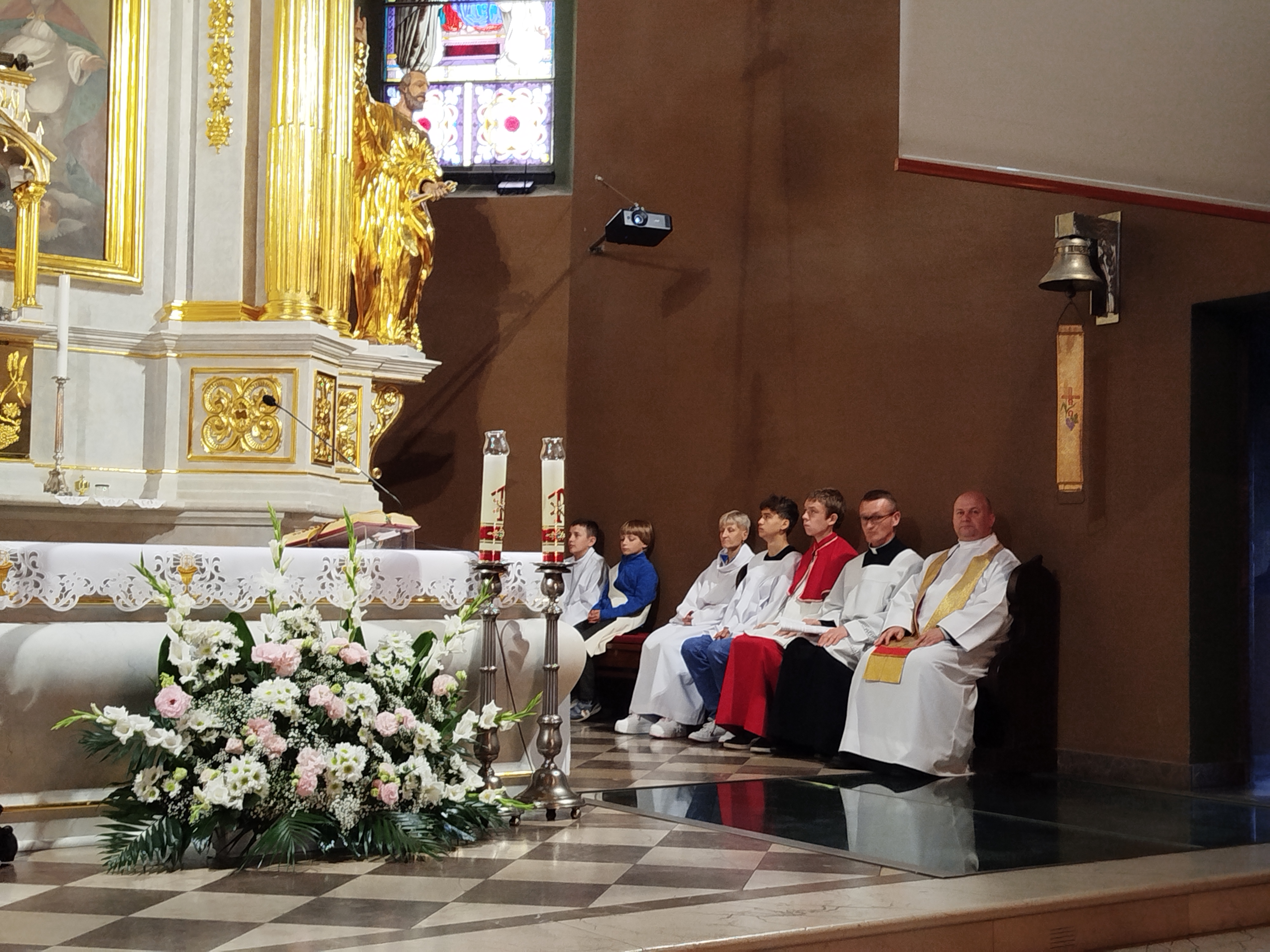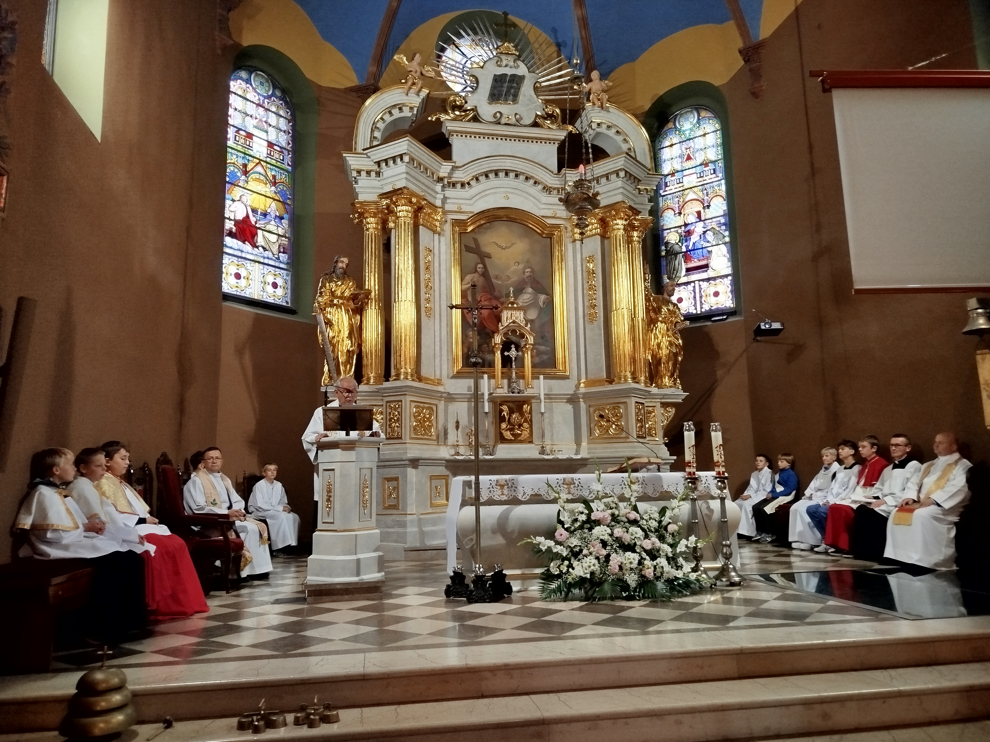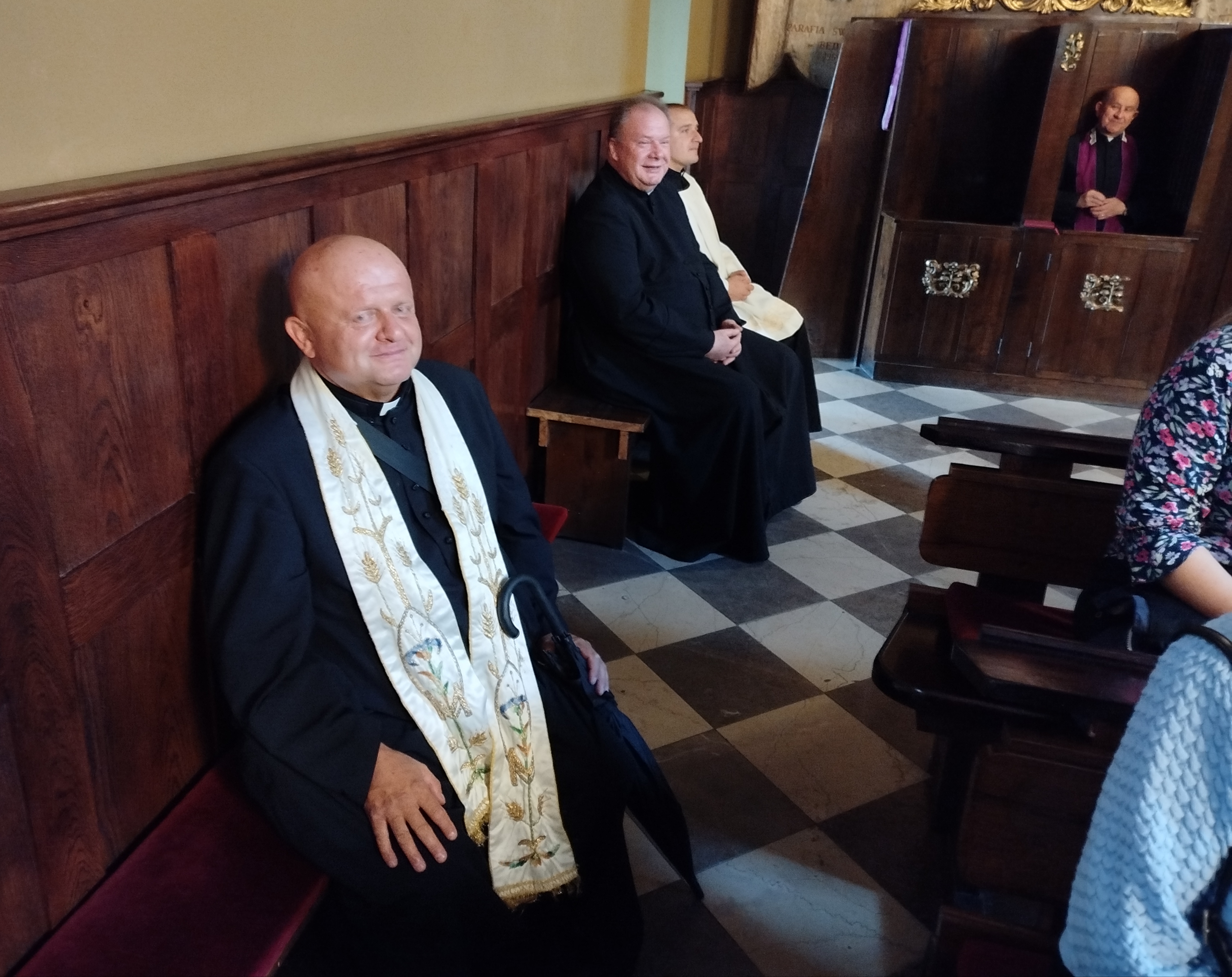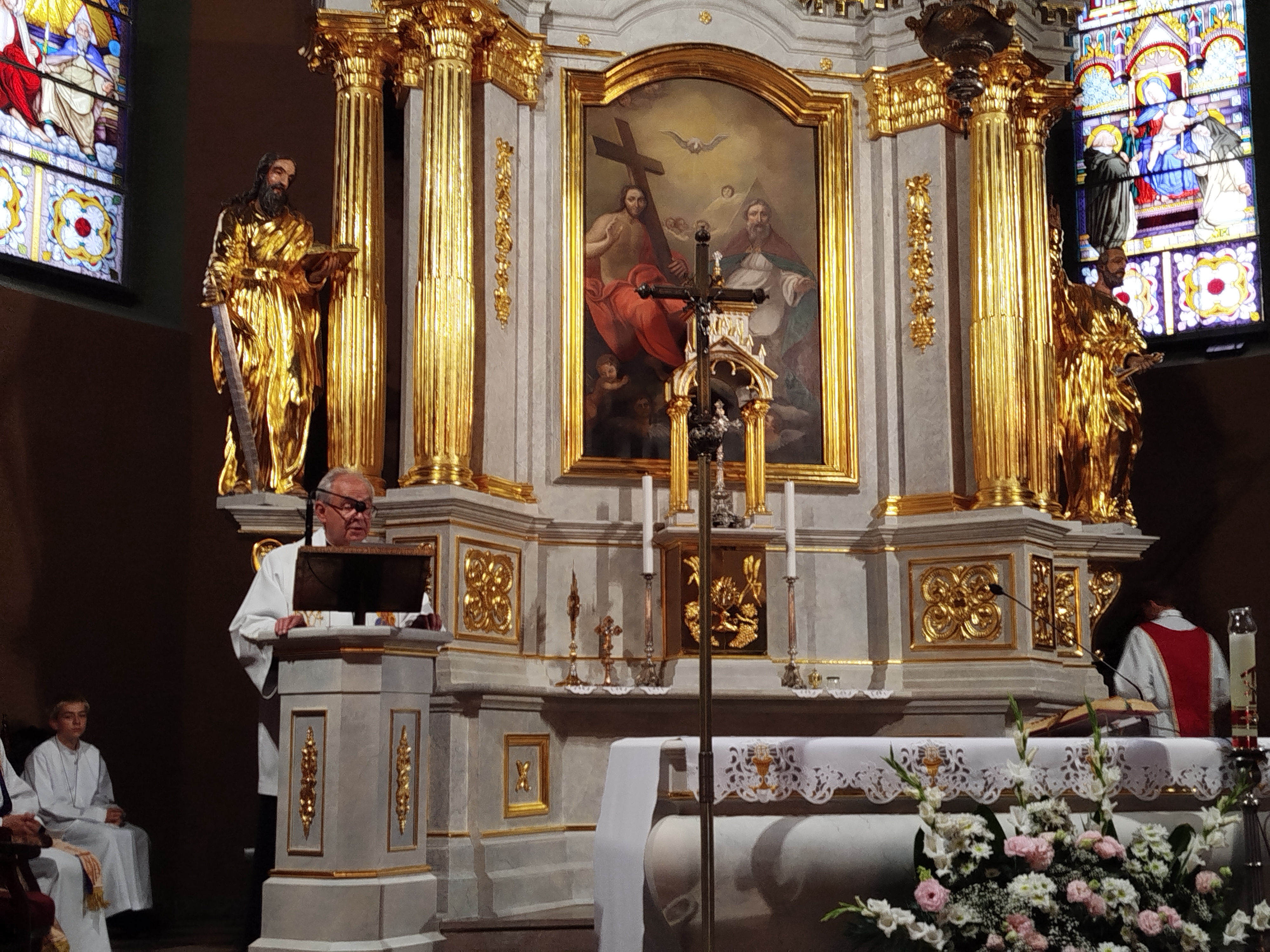Pielgrzymów przywitali Proboszcz parafii Świętej Trójcy ks. Andrzej Stępień wraz z wikariuszem ks. Łukaszem Wawrzyniakiem. Wśród zgromadzonych w kościele św. Trójcy byli przedstawiciele naszego dekanatu z parafii Nawiedzenia NMP z Syberki, Św. Siostry Faustyny, Św. Jana, Najświętszego Serca Pana Jezusa, Św. Brata Alberta oraz oczywiście Św. Trójcy i naszej parafii Św. Barbary. Wszyscy przybyli wraz ze swoimi Proboszczami i Wikariuszami.